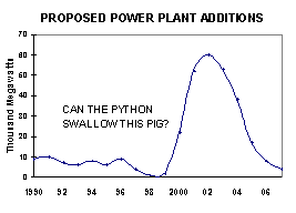 POWER SURGE The nation's long-standing glut of natural gas and electrical capacity, along with the world's spare oil capacity, vanished simultaneously in spring 2000. Prosperity and the Internet are partly responsible. Fueled by cheap energy, the U.S. economy grew 60% since 1986, an astounding 5% in 2000 alone. Gas consumption grew 36% over that period. But it was the demand for electricity-up 5.4% in 1998, an astounding rate for such a large economy- that has had the biggest impact on gas prices. To meet our growing electricity needs, utilities have ordered 180,000 Megawatts of gas-fired power plants to be installed by 2005. It was a logical thing to do: gas is the cheapest, cleanest way to convert fossil fuel to electricity. But if ordering one gas turbine makes perfect sense, ordering 1,000 is a recipe for disaster. No one in the utility industry asked the key question: can we produce enough gas to run all those plants? Many experts think the answer is no.