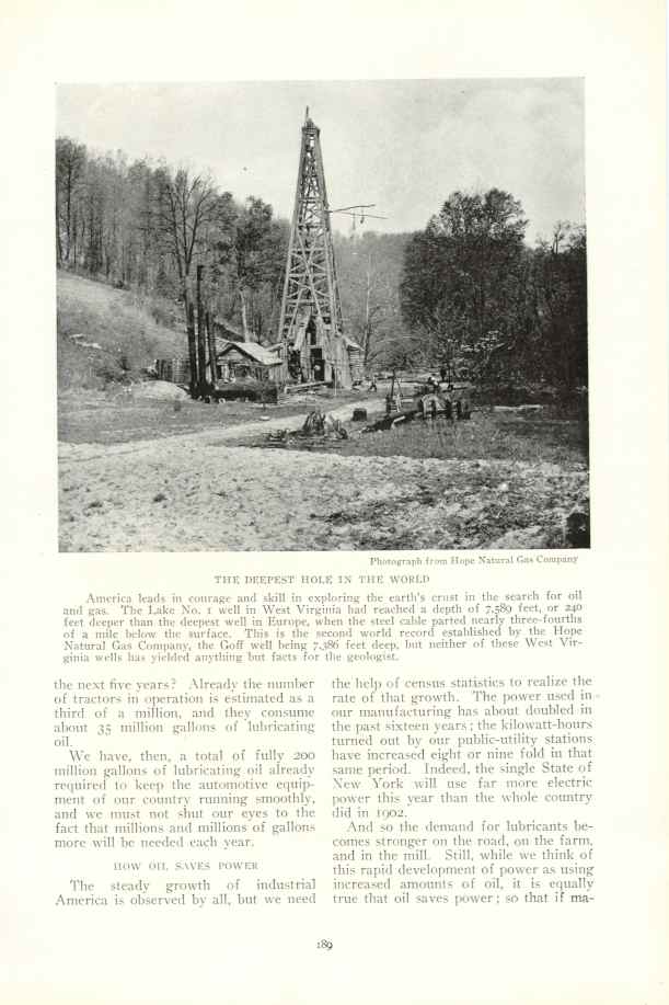 | Page 185 | Oil no longer our light by night, but premier power source More than 300 products of petroleum | Number four well at Joy Farm |