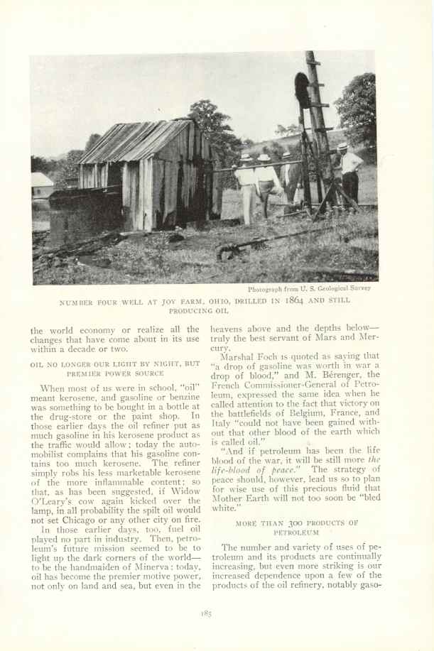 | Page 185 | Oil no longer our light by night, but premier power source More than 300 products of petroleum | Number four well at Joy Farm |