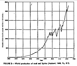 Dr. HUBBERT. The growth of total energy, industrial energy of the United States, from coal, oil, gas, waterpower, plotted on semilogarithmic paper will plot a straight line if you have uniform exponential growth. That straight line continued until the period of about a 3-year interval, 1907 to 1910, and then it broke away to a lower line of less than 2 percent a year. The growth rate up until that time was about 7 percent, a year.