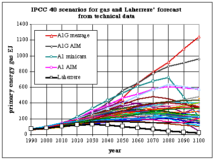 In fact, the likely scenario for conventional and unconventional gas production, based on technical data is below the lowest of the wide range of IPCC scenarios as shown in the graph at left.